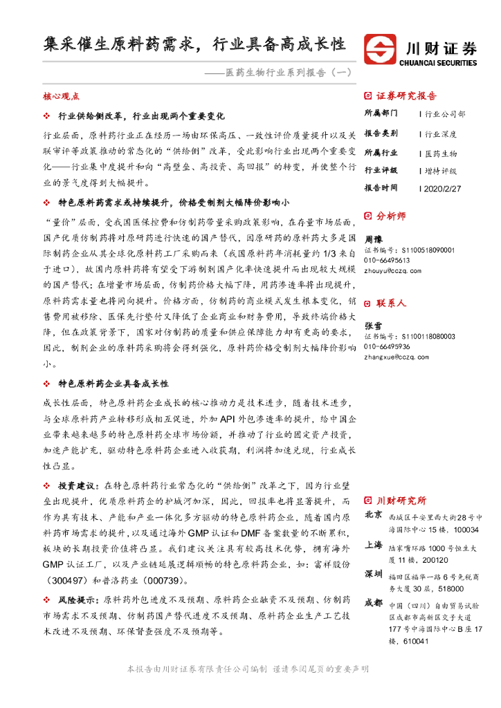 川财证券:医药生物行业系列报告(一):集采催生原料药需求,行业具备高成长性.pdf