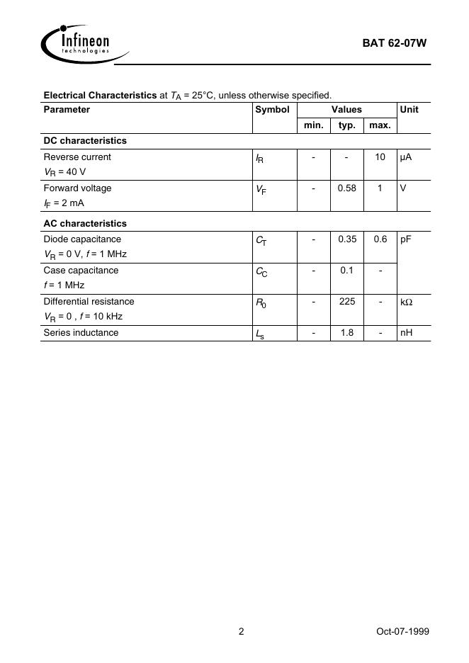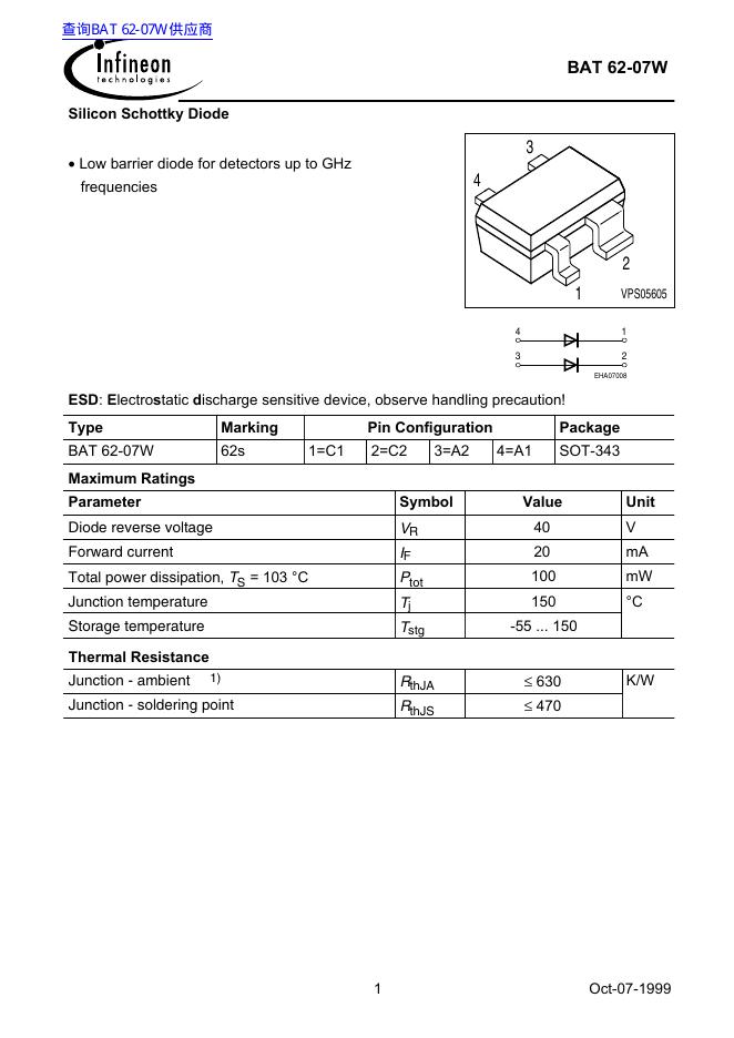 Infineon BAT 62-07W 数据手册.pdf