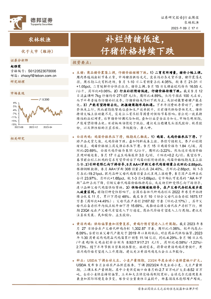 德邦证券:农林牧渔行业周报:补栏情绪低迷,仔猪价格持续下跌.pdf