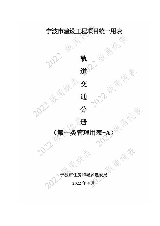 宁波市建设工程资料统一用表(2022版)轨道交通分册(第一类管理用表-A)第一册 建设单位.pdf