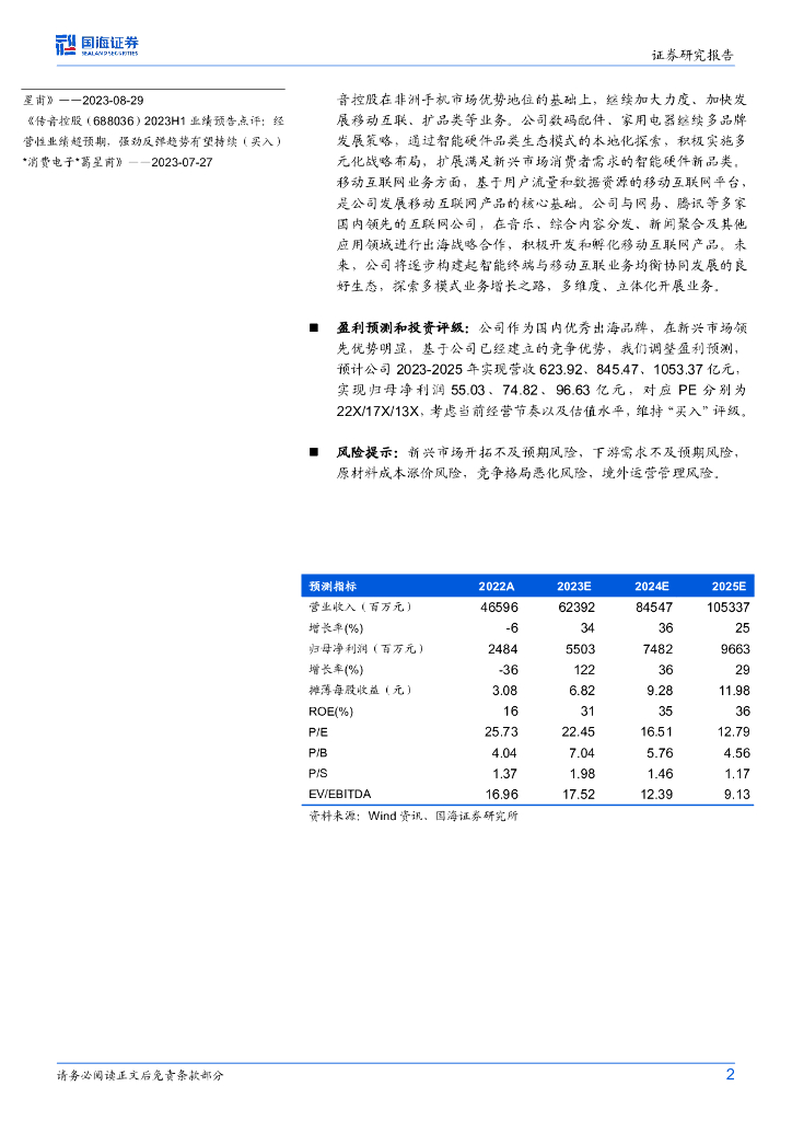 国海证券:传音控股(688036)-2023年业绩快报点评:新兴市场需求强劲,多元布局引领成长.pdf