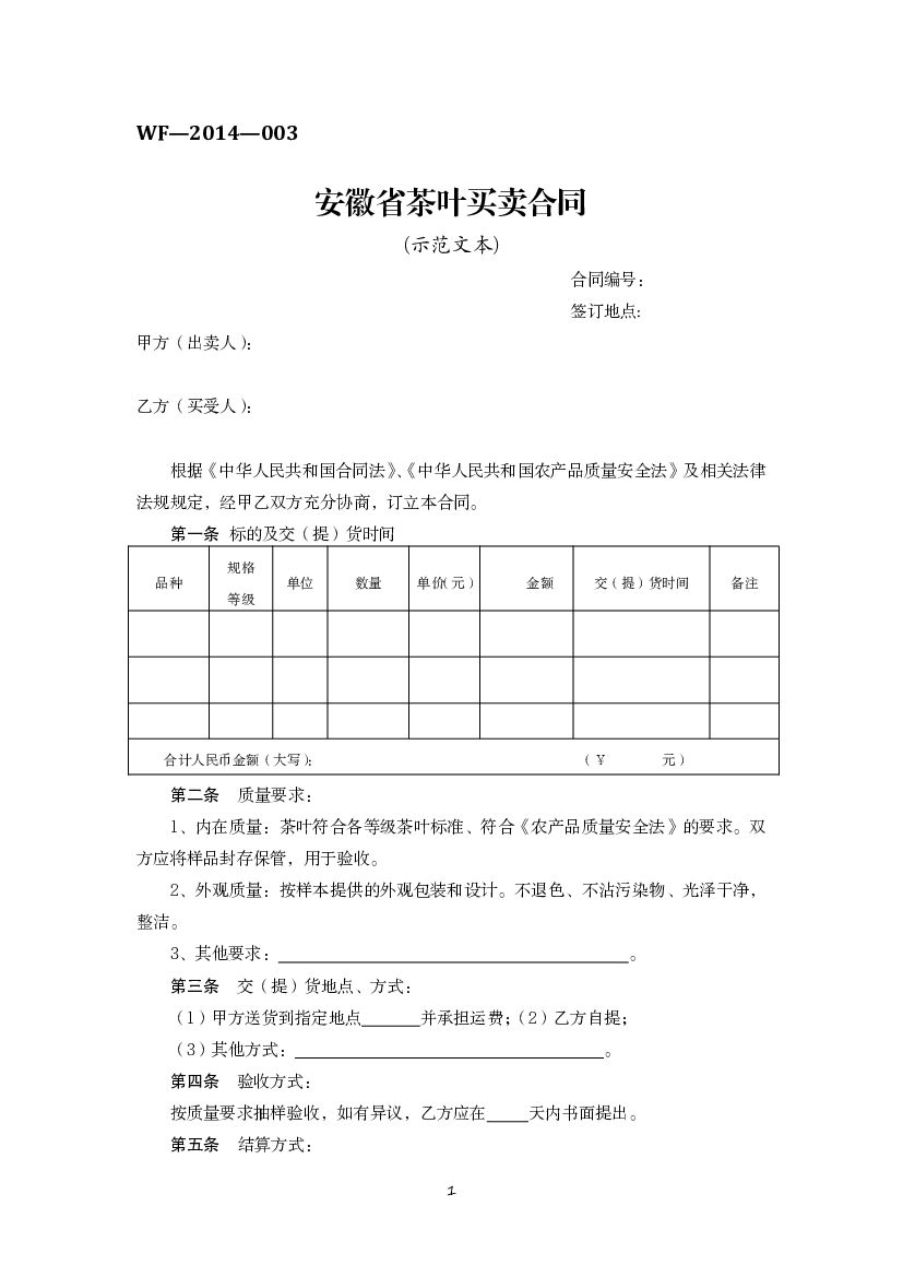 WF-2014-003 安徽省茶叶买卖合同(示范文本).pdf