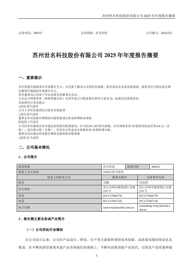 300522-世名科技:2025年年度报告摘要.pdf