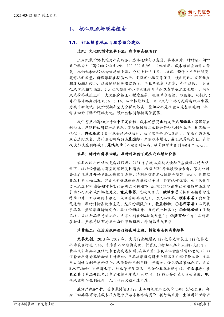 新时代证券:轻工制造行业:生活用纸终端价格略涨,重视原材料涨价下龙头配置价值.pdf