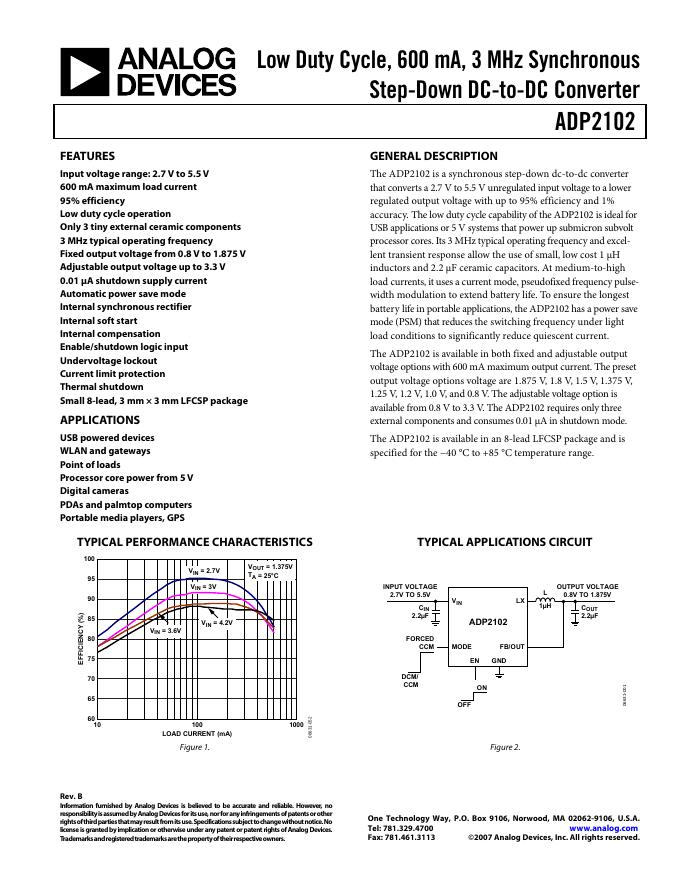 ANALOG DEVICES ADP2102产品数据手册Rev B.pdf