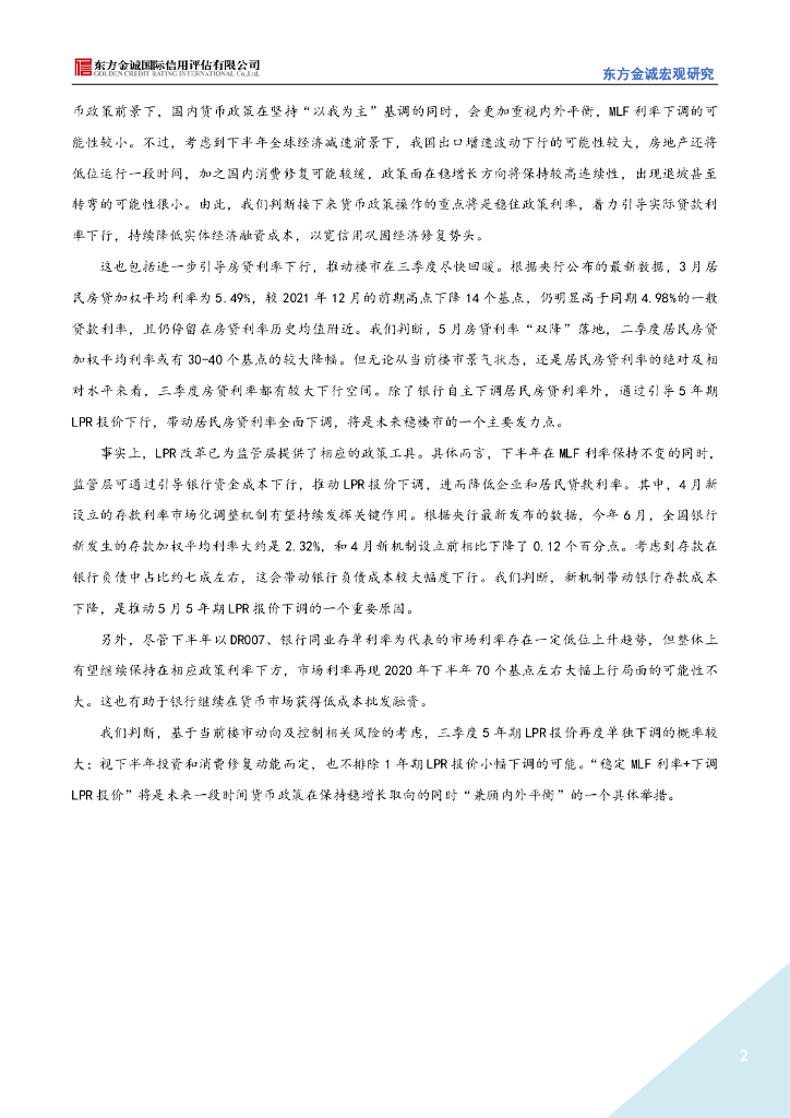 东方金诚:7月LPR报价保持不变,三季度5年期品种下调概率较大.pdf