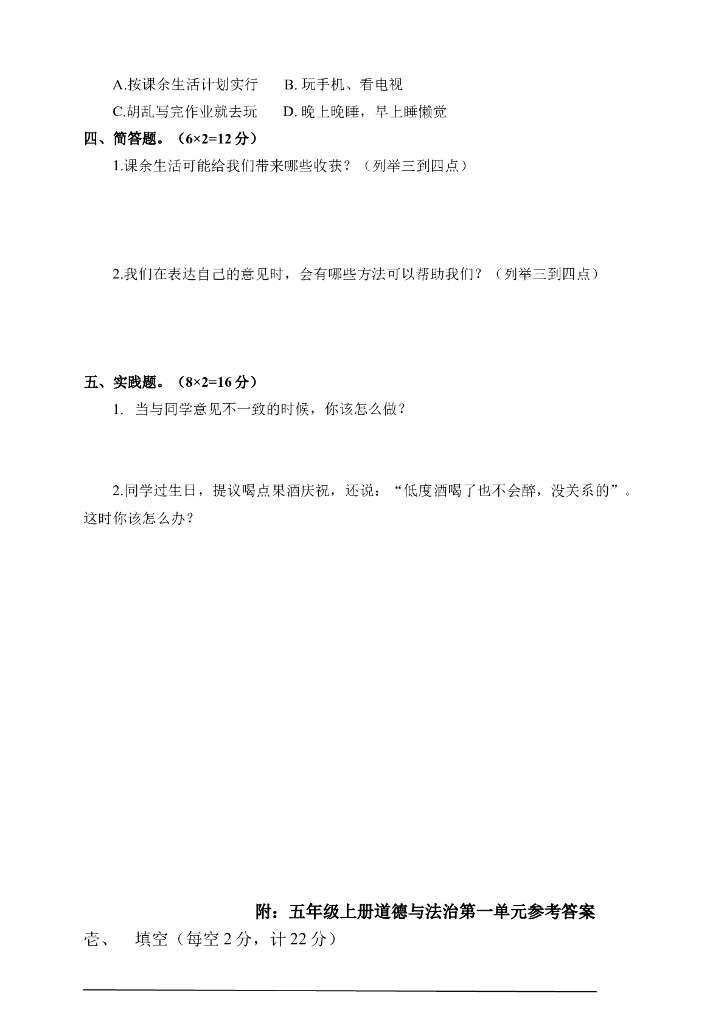 第一单元 面对成长中的新问题 测试题.doc