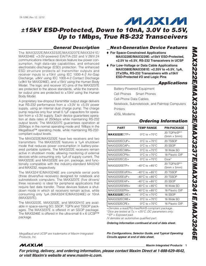 MAXIM MAX3222E/MAX3232E/MAX3237E/MAX3241E /MAX3246E 数据手册.pdf