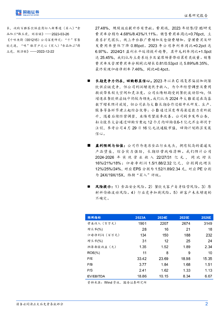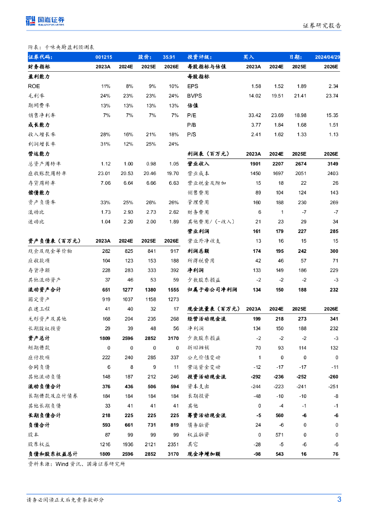 国海证券:千味央厨(001215)-2024Q1收入承压,小B有望逐季提速季报点评.pdf