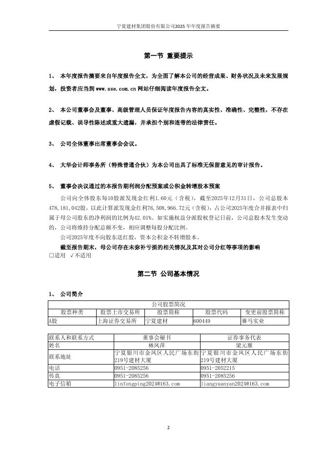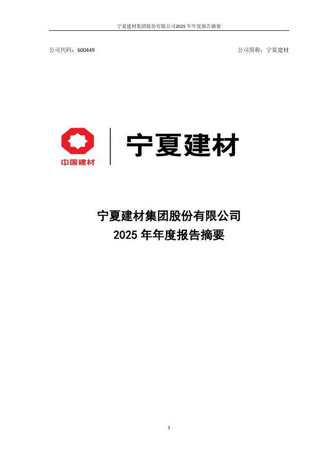 600449-宁夏建材:宁夏建材2025年年度报告摘要.pdf