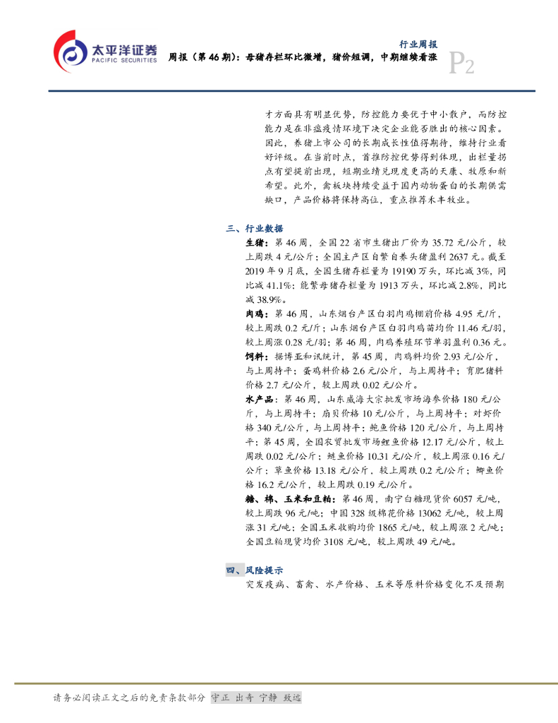 太平洋证券:农林牧渔周报(第46期):母猪存栏环比微增,猪价短调,中期继续看涨.pdf