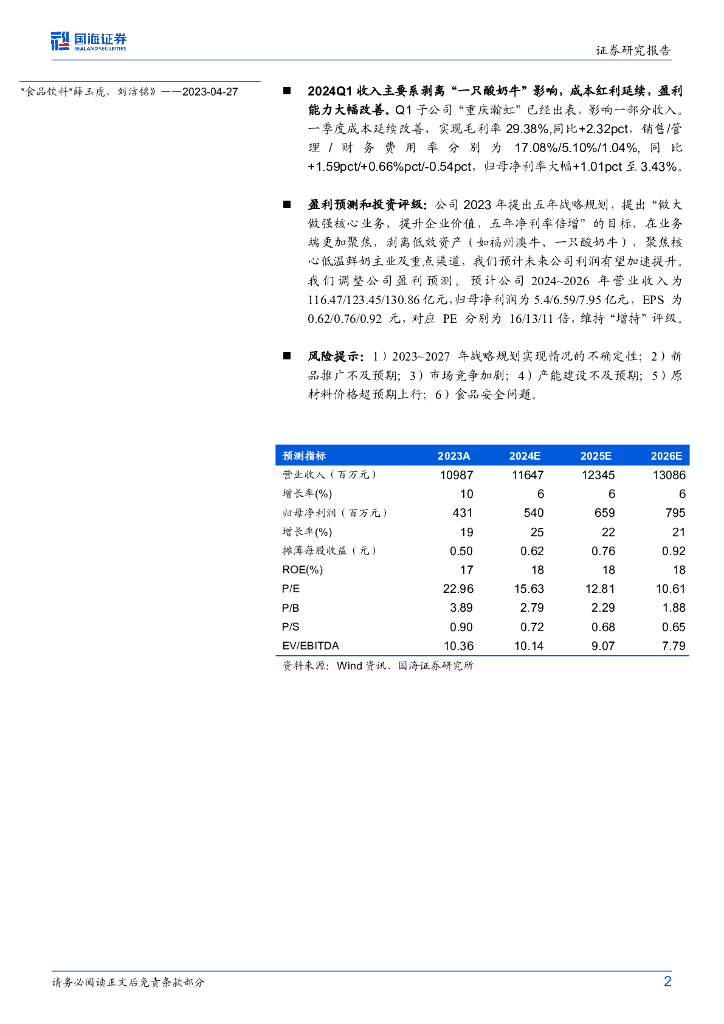国海证券:新乳业(002946)-2023年年报及2024年一季报点评:主业稳健增长,向“五年规划”持续迈进.pdf