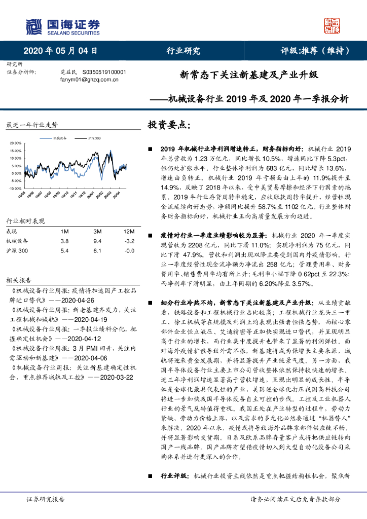国海证券:机械设备行业2019年及2020年一季报分析:新常态下关注新基建及产业升级.pdf