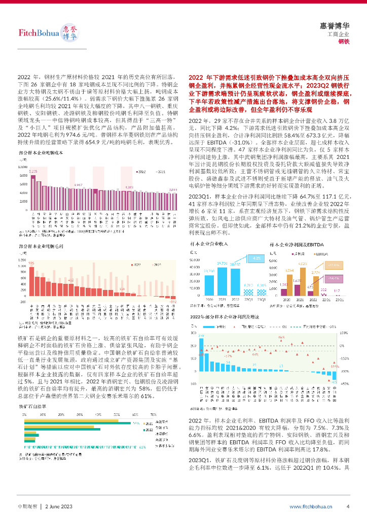 惠誉博华:2023年钢铁行业中期信用观察:行业景气急转直下,钢企盈利持续承压.pdf