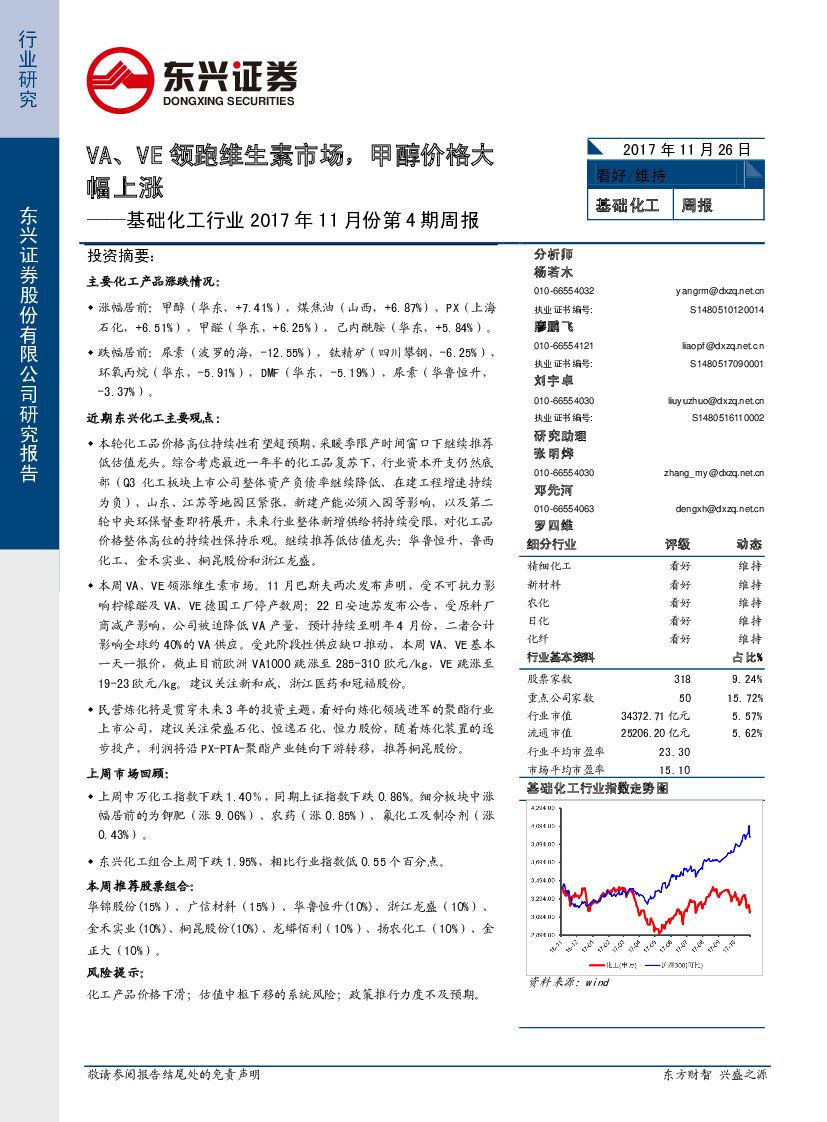 东兴证券:基础化工行业2017年11月份第4期周报:VA、VE领跑维生素市场,甲醇价格大幅上涨.pdf