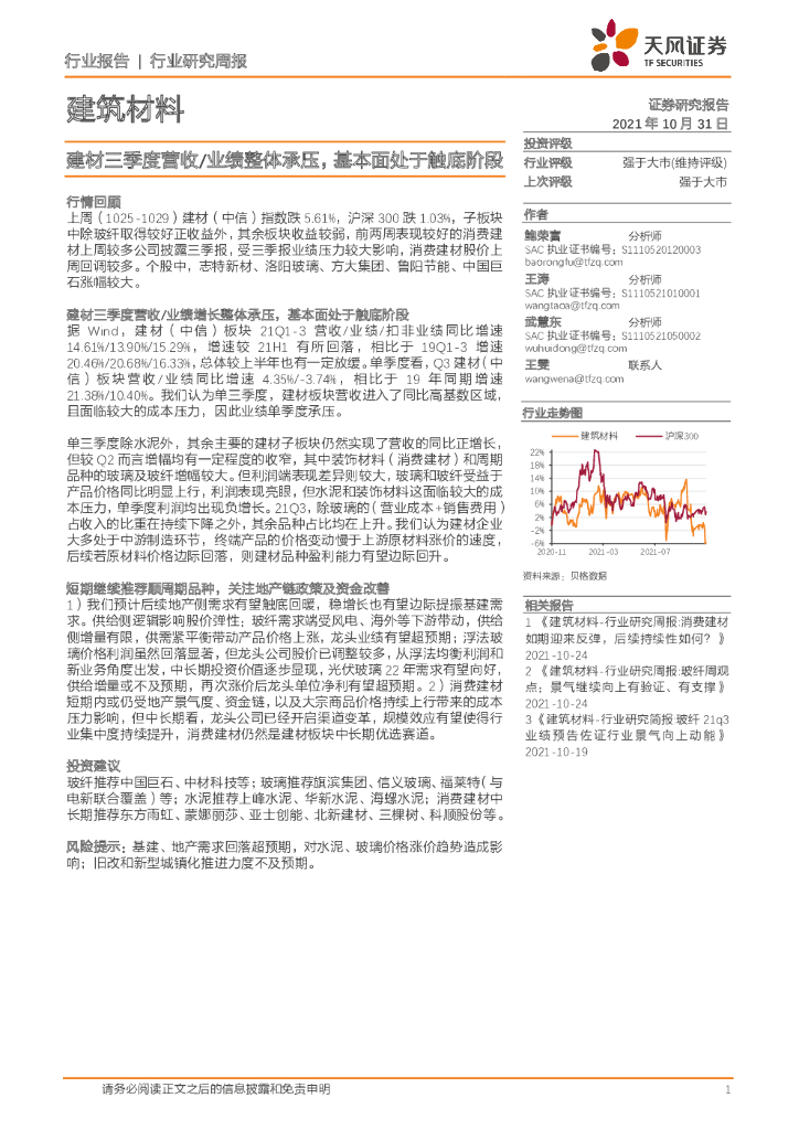 天风证券:建筑材料:建材三季度营收/业绩整体承压,基本面处于触底阶段.pdf