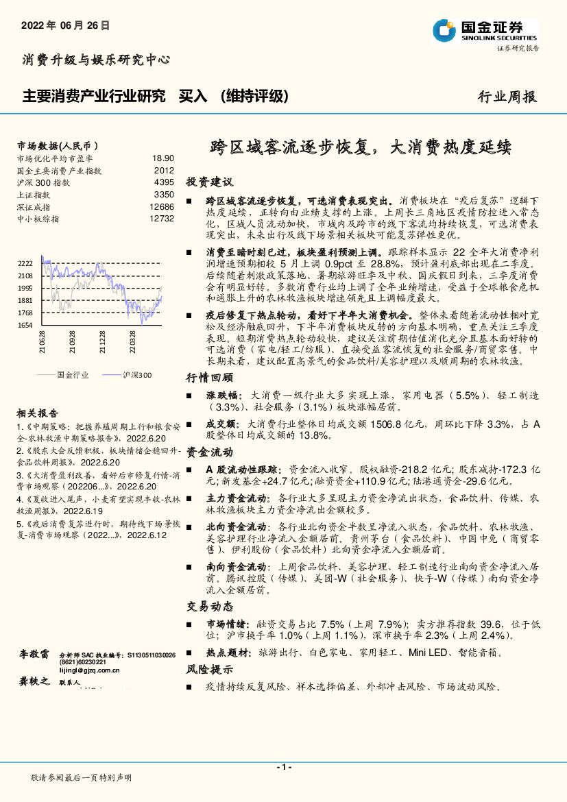 国金证券:主要消费产业行业研究:跨区域客流逐步恢复,大消费热度延续.pdf