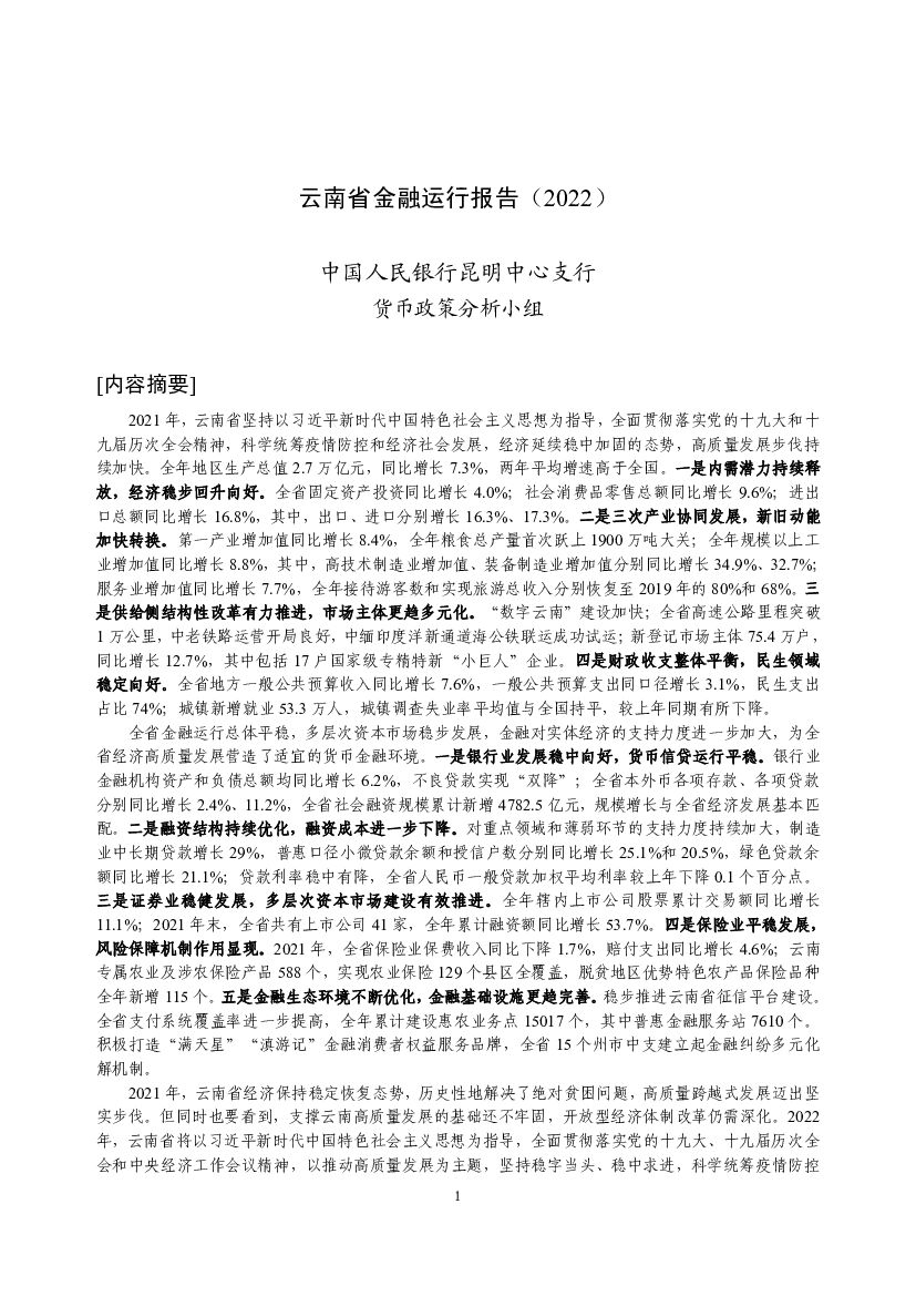 中国人民银行:云南省金融运行报告(2022).pdf