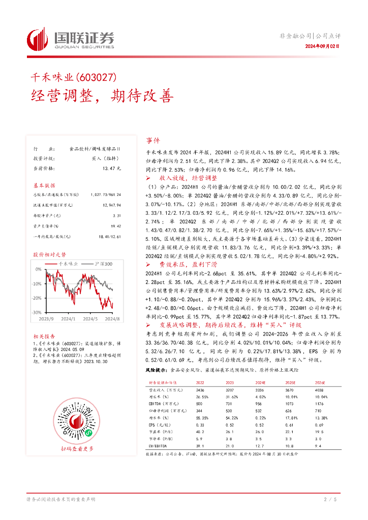 国联证券:千禾味业(603027)-经营调整,期待改善.pdf