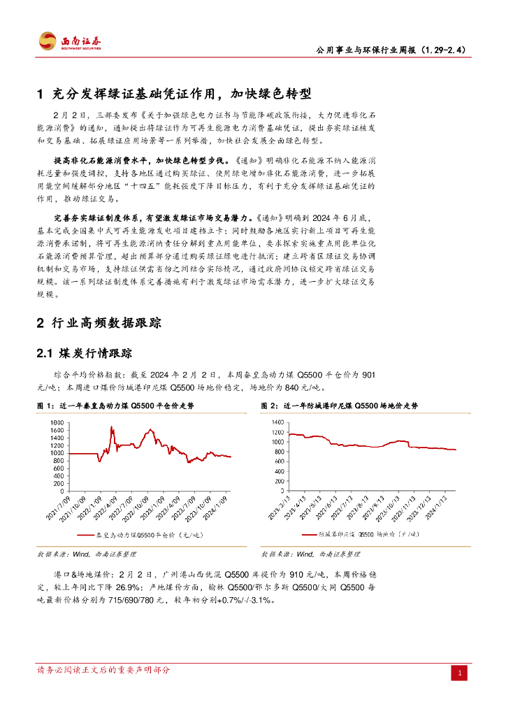 西南证券:公用事业与环保行业周报:充分发挥绿证基础凭证作用,加快绿色转型.pdf