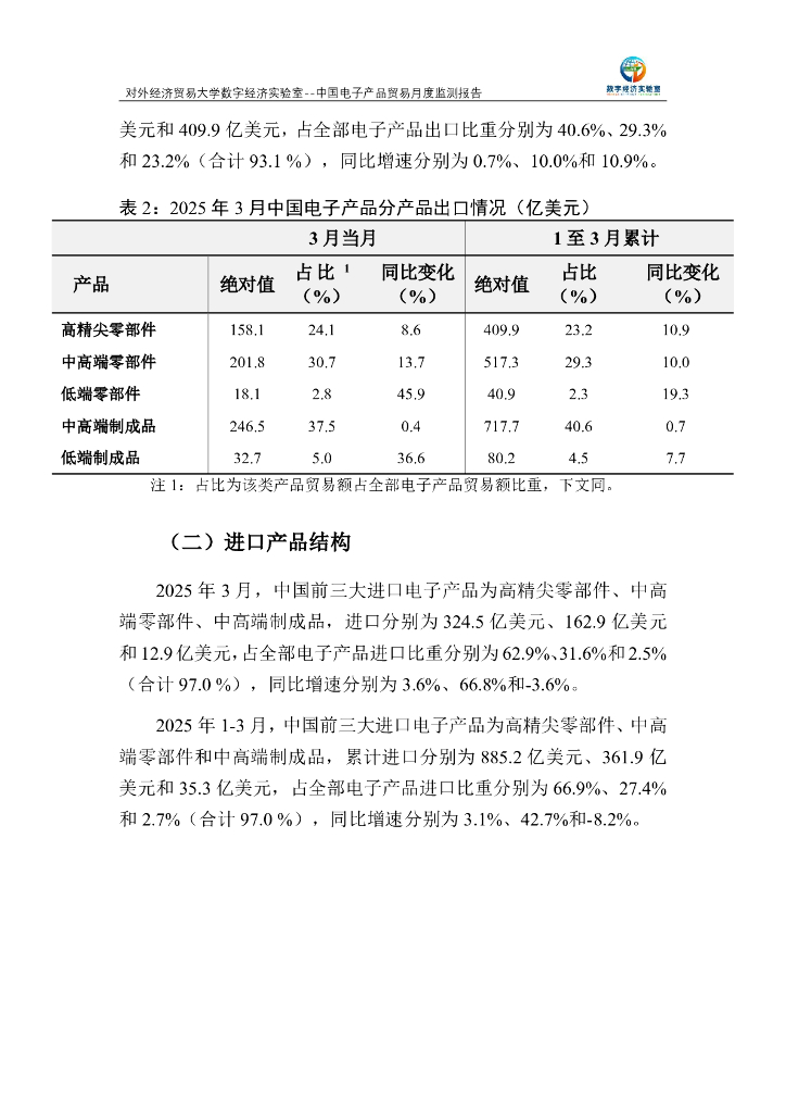 对外经济贸易大学:中国电子产品贸易月度监测报告(2025年1-3月).pdf