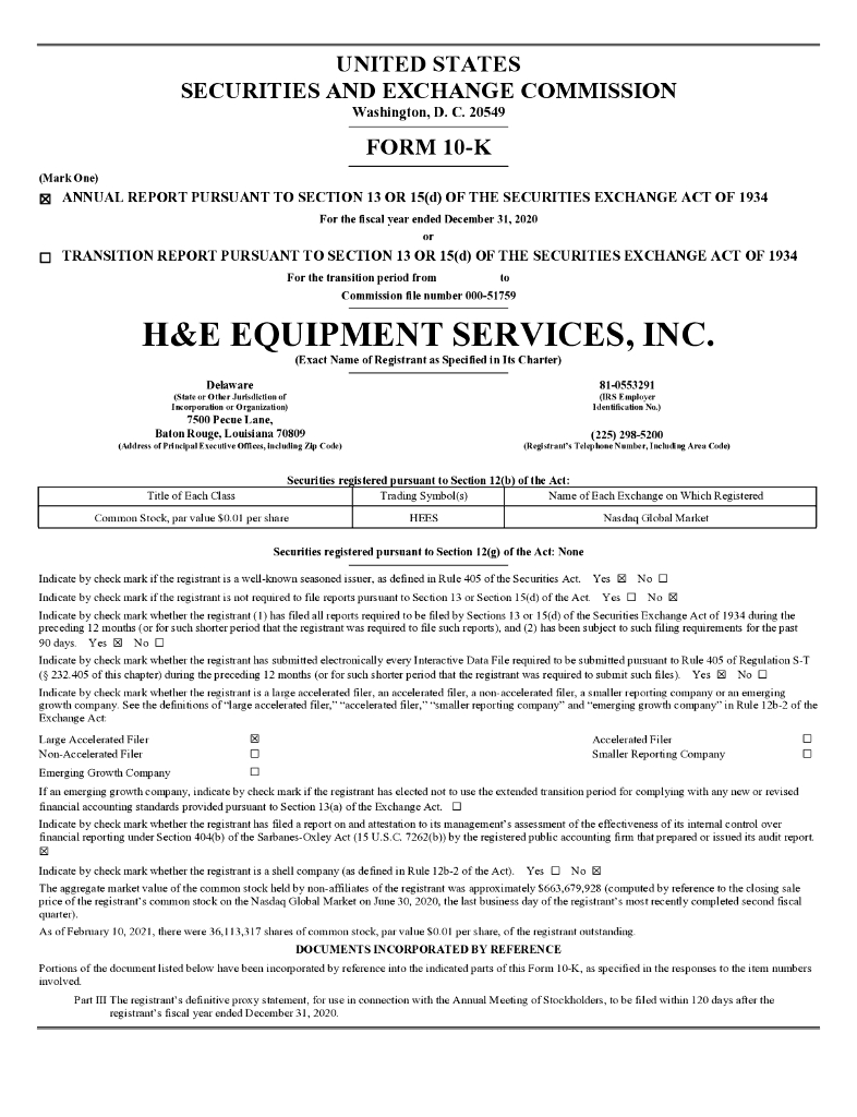 H&E Equipment Services Inc.(HEES)2020财年年度报告(英文版).pdf