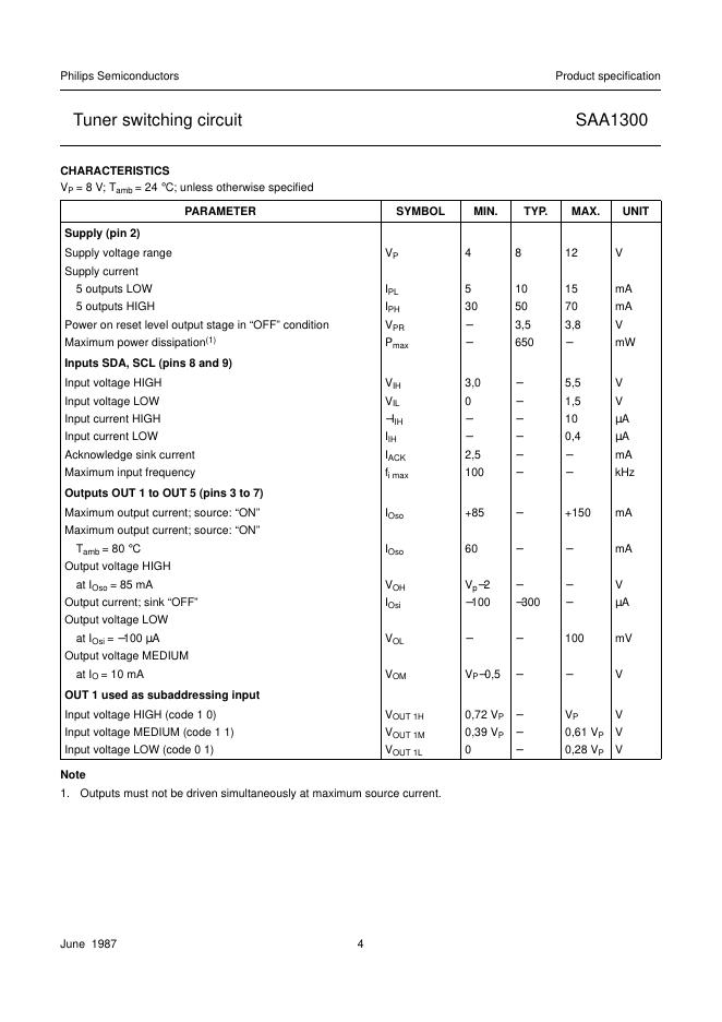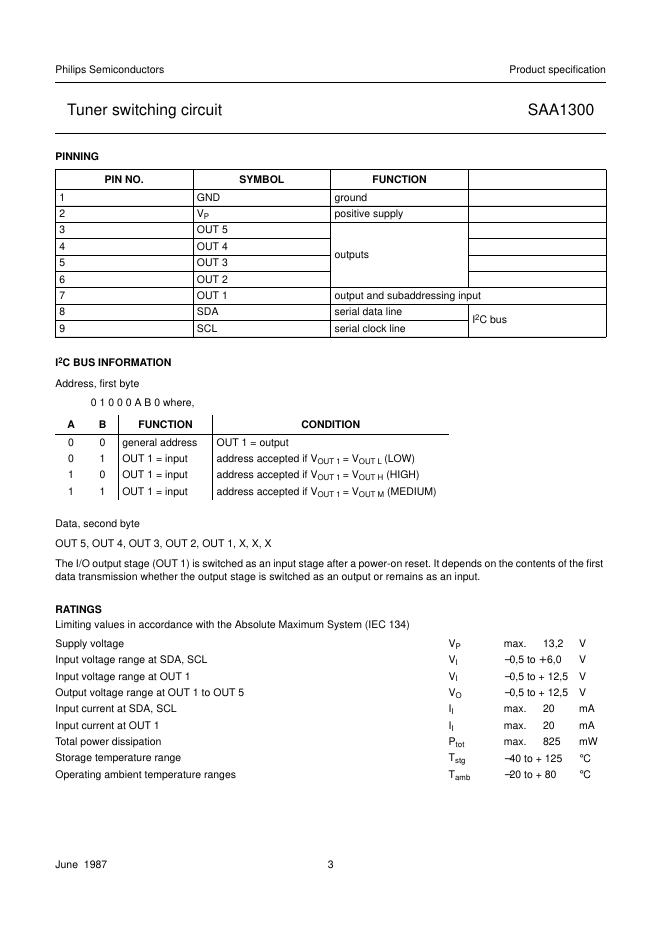 philips SAA1300 Tuner switching circuit 数据手册.pdf