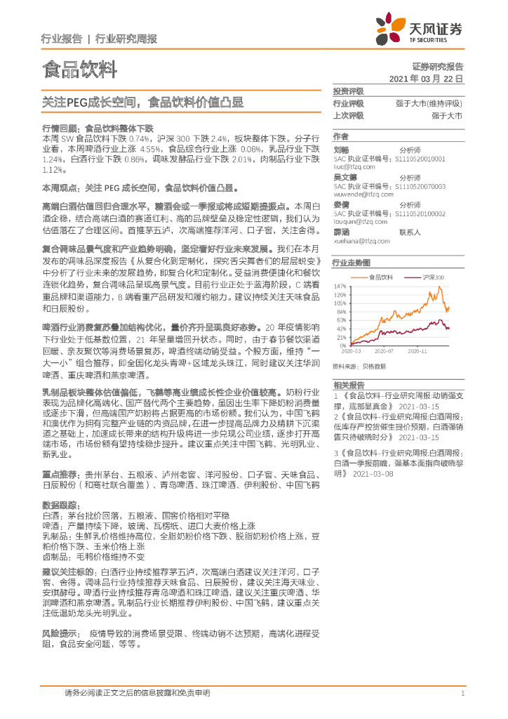 天风证券:食品饮料行业研究周报:关注PEG成长空间,食品饮料价值凸显.pdf