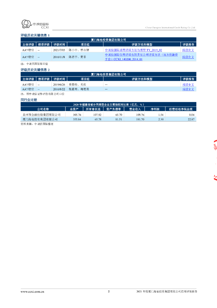 中诚信:2021年度厦门海沧投资集团有限公司信用评级报告.pdf