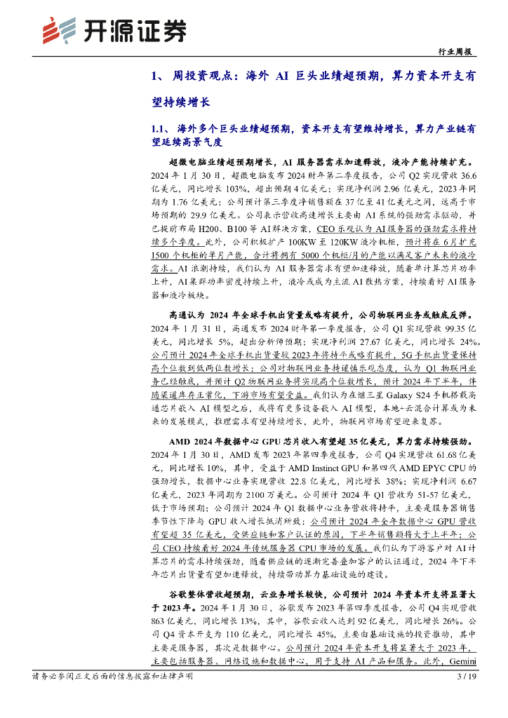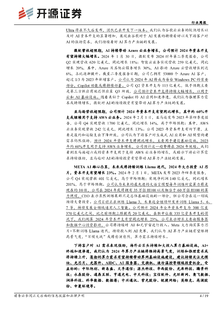 开源证券:通信行业周报-海外AI巨头财报总结:业绩表现亮眼,有望持续大力投入AI.pdf