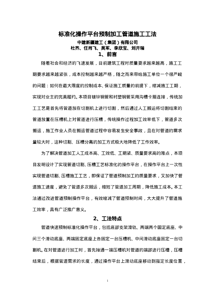 QHGF-2022122 标准化操作平台预制加工管道施工工法.doc