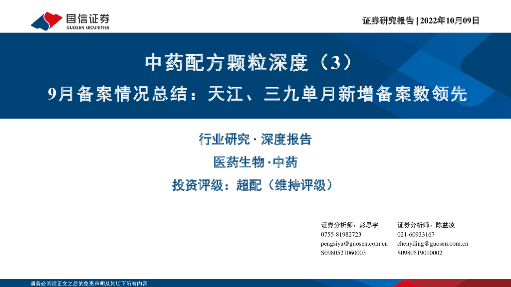 国信证券:中药配方颗粒深度(3):9月备案情况总结:天江、三九单月新增备案数领先.pdf