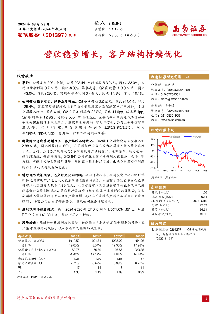 西南证券:溯联股份(301397)-2024中报点评:营收稳步增长,客户结构持续优化.pdf