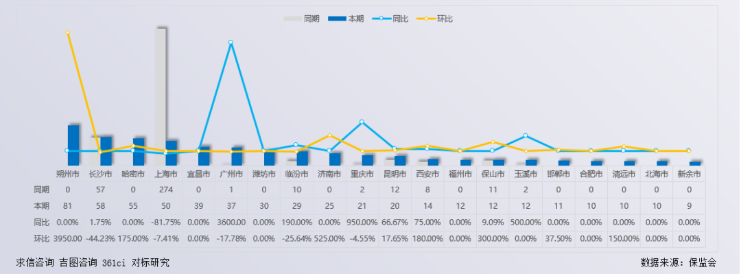 从销量分布来看,该企业市场高度集中,销量前20城市占总销量的76.87%。一线城市入围2个,新一线城市入围3个,二三线城市入围15个。朔州市本期贡献81辆,占比11.42%排第1,同比增长0.00%辆,环比增长3950.00%,占当地市场份额43.32%,较上年同期扩大43.32个百分点。临汾市综合表现较为突出,本期贡献29辆,同比增长190.00%,环比增长-25.64%,市场份额8.58%,较上同期扩大7.11个百分点。