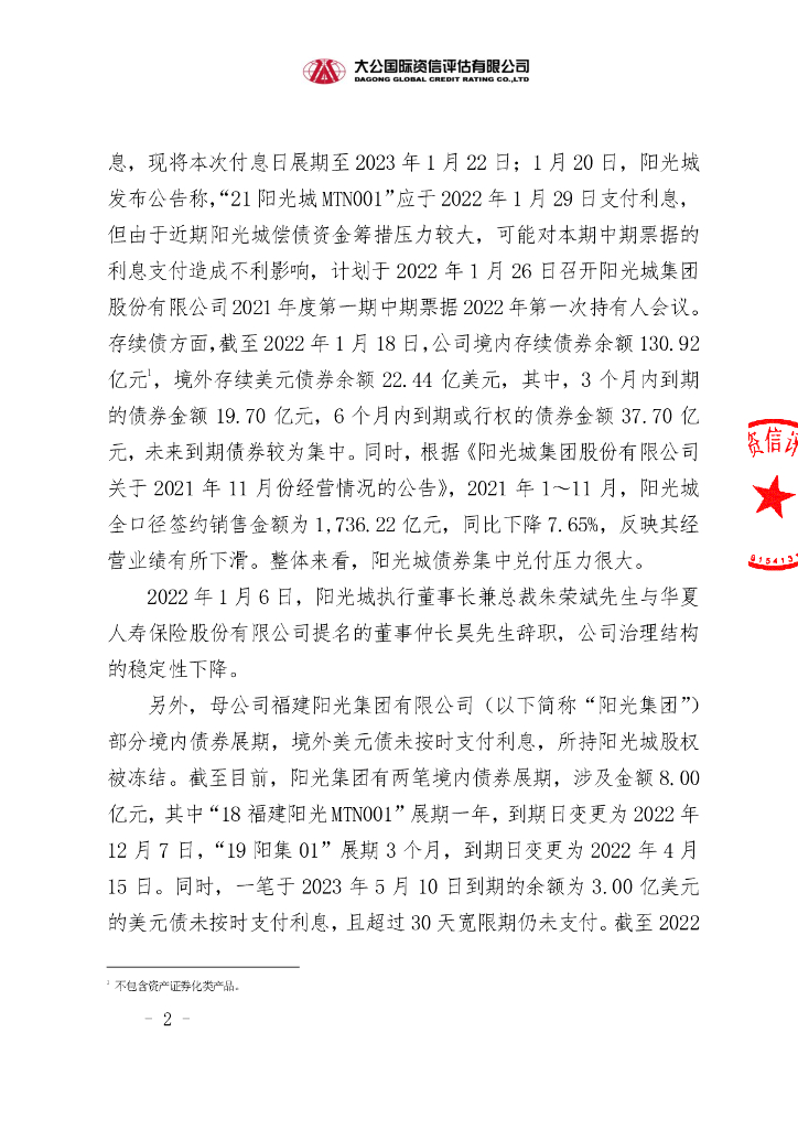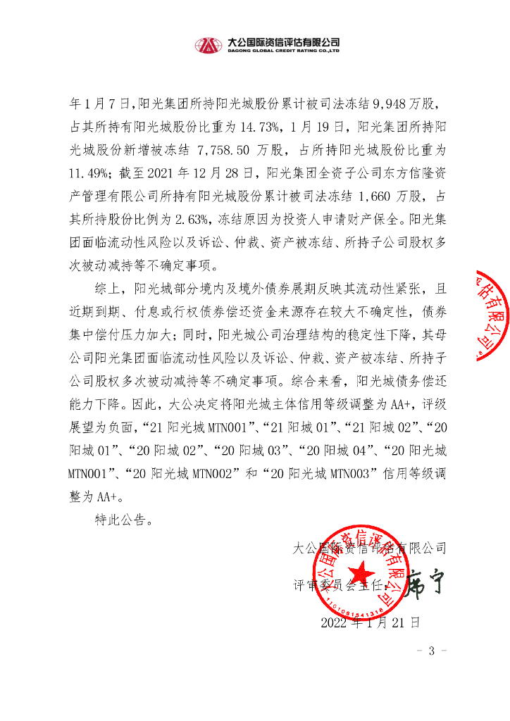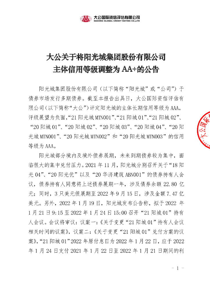 大公:大公关于将阳光城集团股份有限公司主体信用等级调整为AA+的公告.pdf