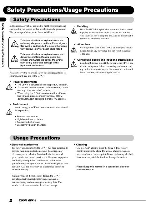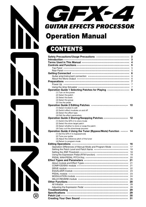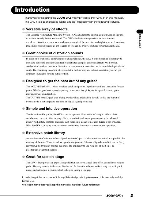 ZOOM GFX-4 GUITAR EFFECTS PROCESSOR 操作手册.pdf