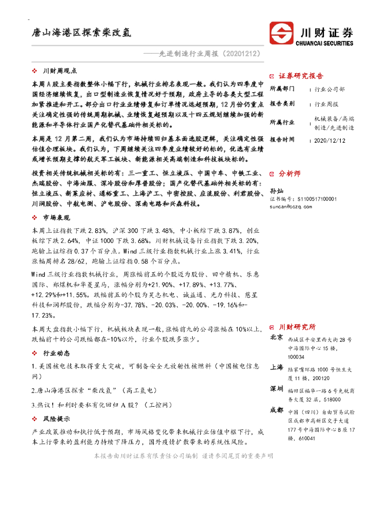 川财证券:先进制造行业周报:唐山海港区探索柴改氢.pdf