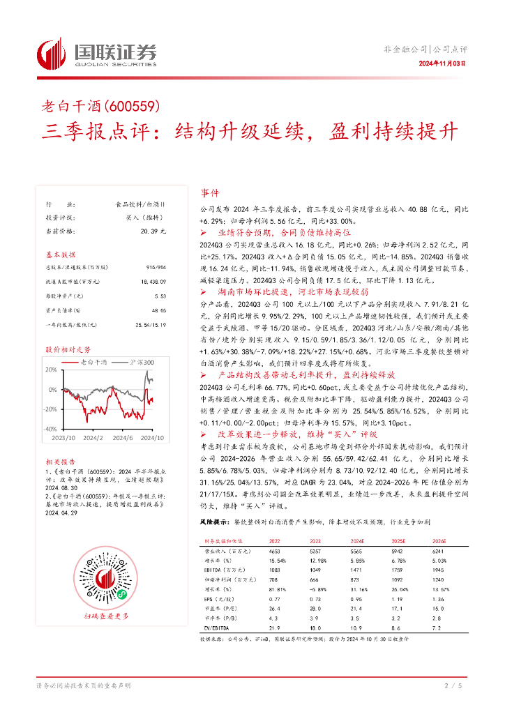 国联证券:老白干酒(600559)-三季报点评:结构升级延续,盈利持续提升.pdf