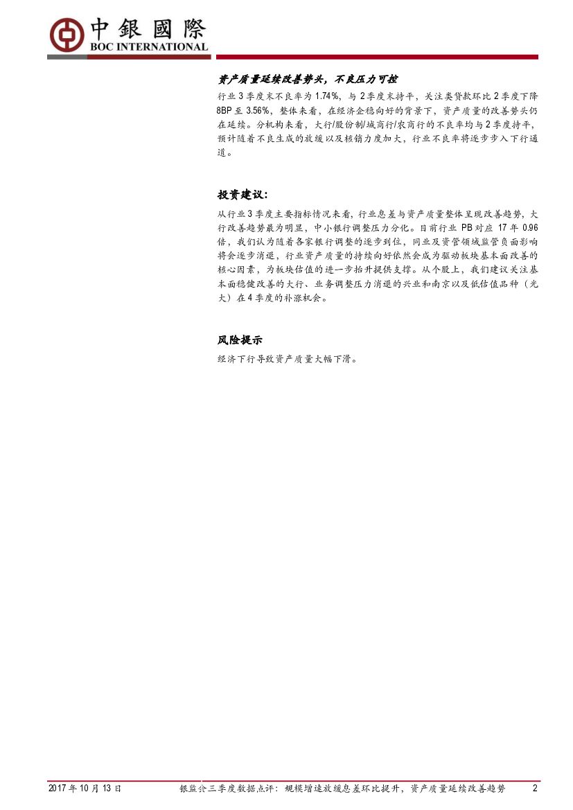 中银国际:银监会三季度数据点评:规模增速放缓息差环比提升,资产质量延续改善趋势.pdf