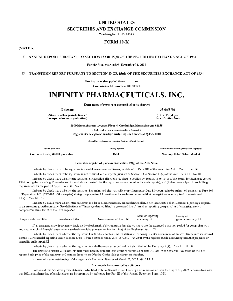 Infinity Pharmaceuticals(INFI)2021财年年度报告(英文版).pdf