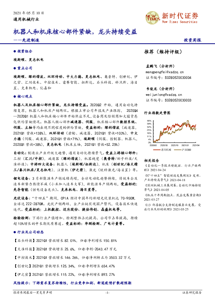 新时代证券:先进制造投资周报:机器人和机床核心部件紧缺,龙头持续受益.pdf
