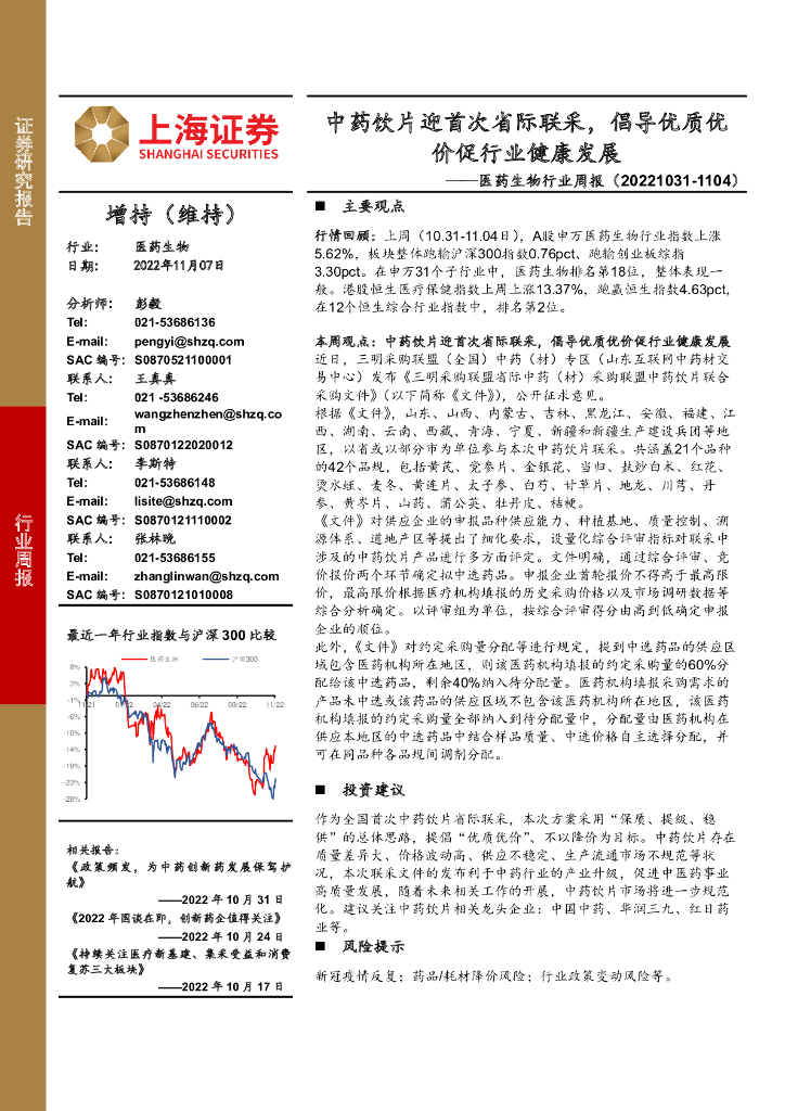 上海证券:医药生物行业周报:中药饮片迎首次省际联采,倡导优质优价促行业健康发展.pdf