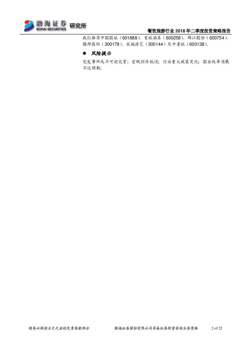 渤海证券:餐饮旅游行业2018年二季度投资策略报告:长期坚守价值投资 兼顾风格均衡配置.pdf