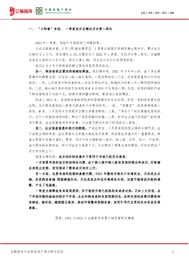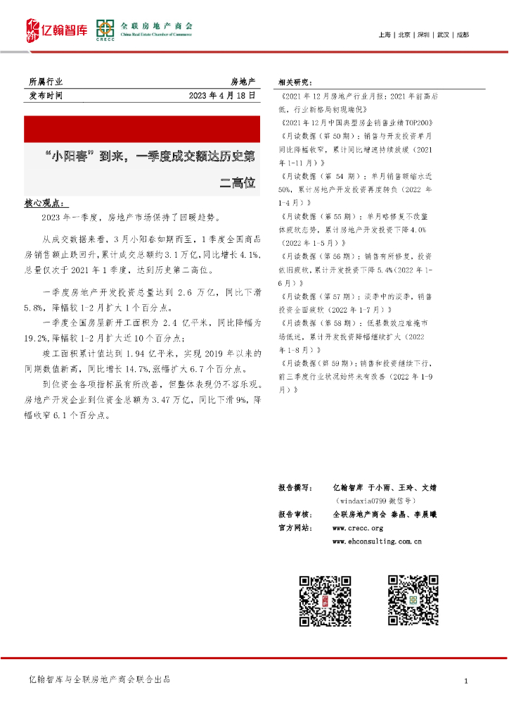 亿翰智库:房地产:“小阳春”到来,一季度成交额达历史第二高位.pdf