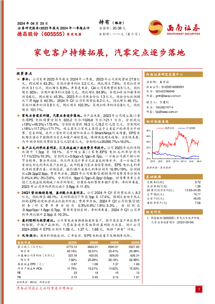 西南证券:德昌股份(605555)-家电客户持续拓展,汽零定点逐步落地.pdf