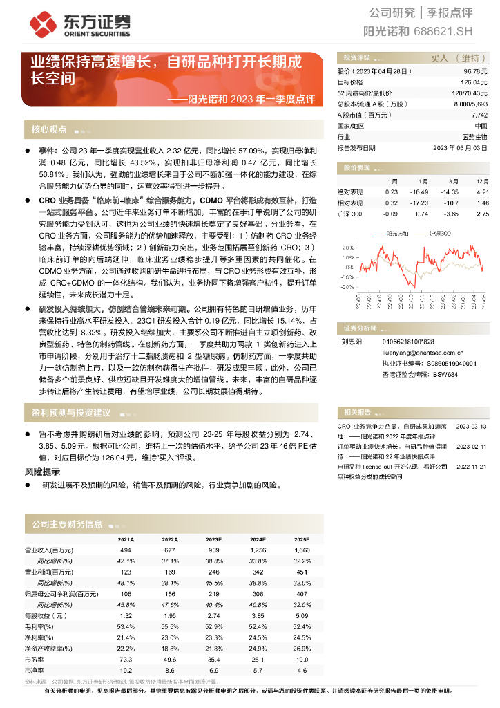 东方证券:阳光诺和2023年一季度点评:业绩保持高速增长,自研品种打开长期成长空间.pdf