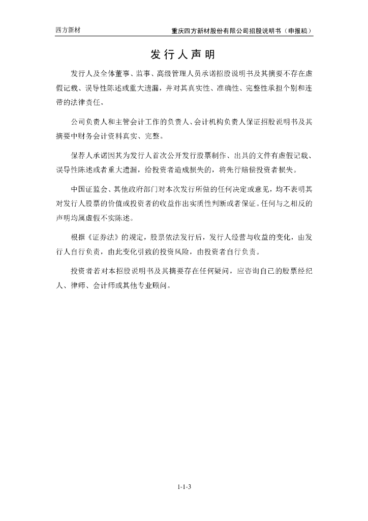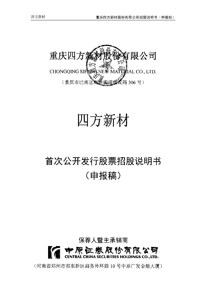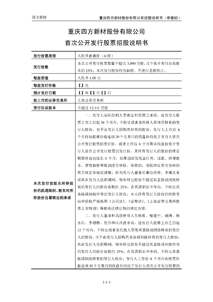 重庆四方新材股份有限公司上交所主板IPO上市招股说明书.pdf