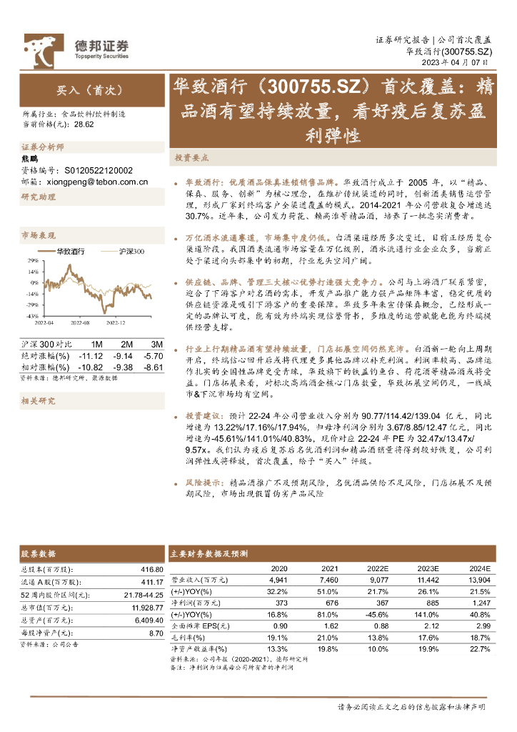 德邦证券:华致酒行(300755)-首次覆盖:精品酒有望持续放量,看好疫后复苏盈利弹性.pdf