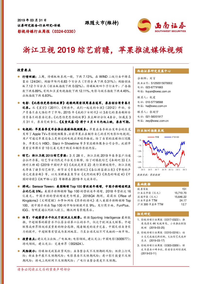 西南证券:影视传媒行业周报:浙江卫视2019综艺前瞻,苹果推流媒体视频.pdf