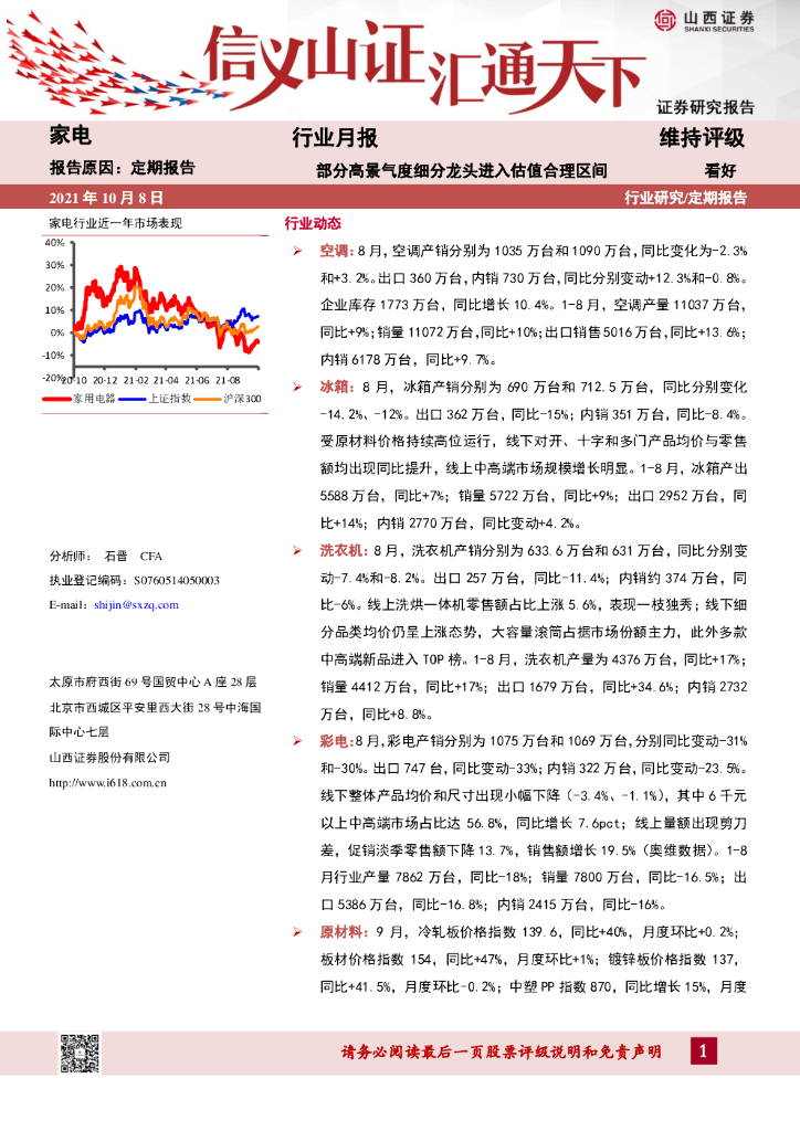 山西证券:家电行业月报:部分高景气度细分龙头进入估值合理区间.pdf